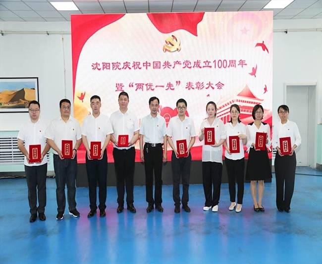 院党委书记、院长胥维昌为沈化测评公司党委、化工新材料所党支部、职能部门第二党支部颁发“先进基层党组织”奖牌。