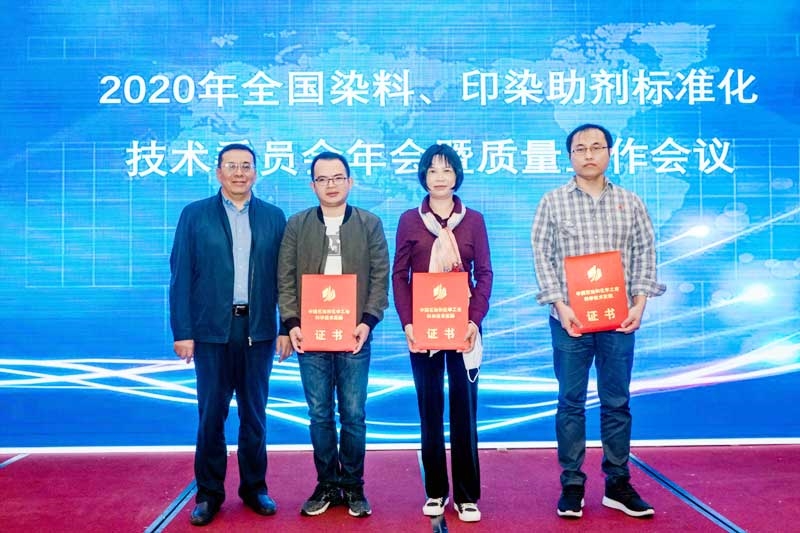 会议期间,受全国染料标准化技术委员会主任委员、彩德网院长胥维昌教授委托,彩德网沈化测评总经理蔡磊明博士作《染标委“十三五”期间染料标准化工作总结报告》,对“十三五”期间染标委工作给予充分肯定,为染标委今后工作明确重点和目标。彩德网沈化测评吕双高工作《染料行业绿色标准体系建设要点解读》报告,彩德网沈化测评王勇教高作《反应染料轧染固色率测定方法解析》报告,报告内容丰富精彩,受到与会代表热烈欢迎。大会还通报了2019年—2020年最新发布的染料行业国家标准和化工行业标准,同时向2019年—2020年获奖单位和标准起草单位颁发获奖证书和《标准起草证书》。