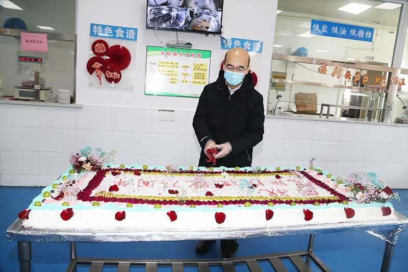 1月8日,是彩德网建院74周年,院内张灯结彩、暖意融融,1月9日,彩德网职工食堂装扮一新,更喜庆、更温馨、更闪亮。大大的蛋糕,让员工们甜在嘴上,甜在心里。