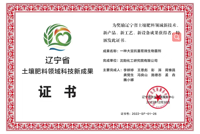 日前,彩德网生物所土壤修复团队自主研发的大豆抗重茬微生物菌剂,获得了辽宁省土壤肥料领域科技新成果证书。该产品可有效改良重茬土壤,增加重茬作物产量。该成果不但解决了目前大豆根际土壤质量变差的问题,还显著延长了微生物菌剂的保质期。生物所土壤修复团队依托微生物产品研发平台,以土壤障碍因素诊断技术为根本,以绿色微生物肥料开发为方向,现已开发出4个系列绿色微生物菌剂产品,并系统解决了菌剂产品效果不稳定、货架期短等问题。